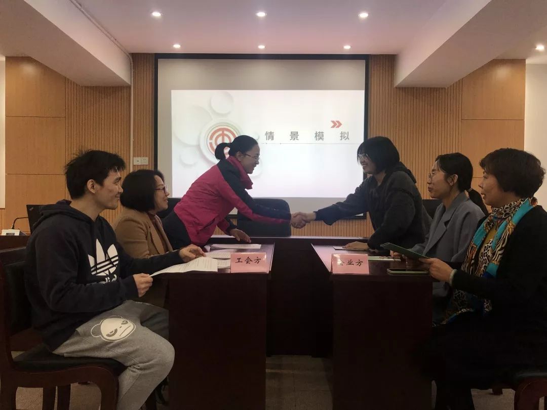 此外,针对部分职业化工会工作者到了企业“说不上话”的问题,此次培训专门设置了情景模拟环节,由业务能力强、熟悉工会工作的老职业化工会工作者本色出演或扮演企业代表,对上门宣传工作组建工作的场景进行模拟,通过实景演绎,对遇到企业不同身份的代表,重点宣传什么内容,遇到一些常规的问题,如何回答等,做出了示范。“虽然每天遇到的情况都会不同,但通过情景模拟,看到前辈们的应对后,现在面对企业,要说什么,怎么说,大致也心里有数了”,今年刚从事工会工作的余美娟在现场说道。