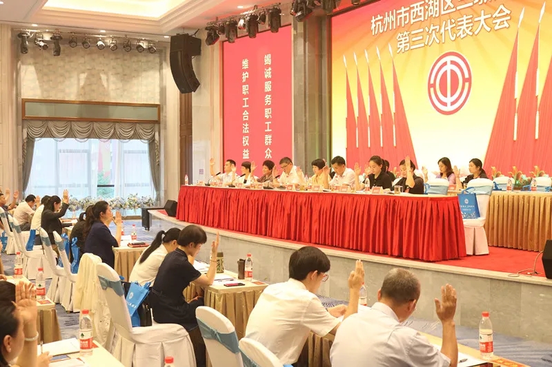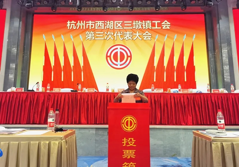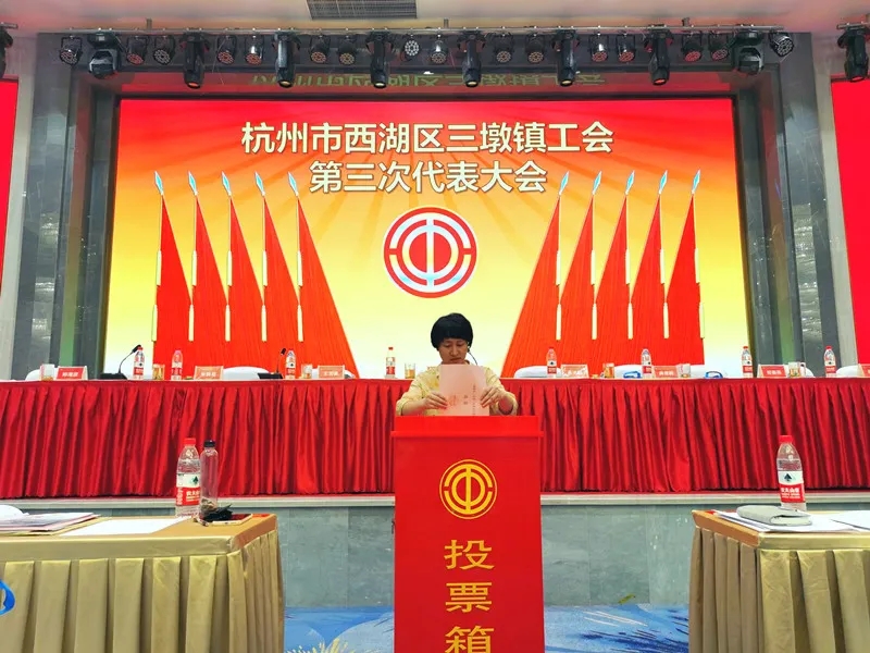 | 7月29日下午,三墩镇总工会召开工会第三次代表大会,镇总工会总结了第二届工会委员会过去五年的工作,提出了今后五年工会工作的总体要求和主要任务,选举产生了镇总工会第三届委员会和第三届经费审查委员会班子。来自全镇机关、村社、楼宇、企业工会的 123名代表出席了本次大会。大会得到了区总工会和镇党委、政府、人大的高度重视,区人大副主任、总工会主席章岳定,区总工会副主席谢瑞华,三墩镇党委书记董威,镇长陶立,人大主席严长标,党委副书记张文新,党委委员毛洁敏,镇妇联、团委等领导出席了大会,章岳定主任、董威书记分别作了重要讲话。 大会在庄严的国歌声中开幕。会上,镇总工会主席王雪美代表第二届工会委员会作工作报告,从围绕中心服务发展、依法维护职工权益、提高服务职工惠及率、不断打造工会特色亮点、完善阵地创设平台、加强工会组织建设等六个方面,全面总结了过去五年的工作成效,提出了今后五年要在引领职工凝聚力量、紧贴中心服务大局、促进和谐劳动关系、精准服务职工需求、创新举措创优争先、夯实基础发挥作用等六个方面有新成效、新作为、新提升的目标任务。 随后,大会严格按照选举法有关规定和程序,选举产生了三墩镇总工会第三届委员会委员、经费审查委员会委员,第三届委员会召开第一次会议,经过选举,毛洁敏同志当选三墩镇总工会主席,朱舜芸、郑海波、郑春燕、蒋向平当选镇总工会副主席,朱舜芸当选第三届经费审查委员会主任。 新当选的镇总工会主席毛洁敏同志在会上作表态发言,她表示,将带领新一任镇总工会班子加强自身学习,提升服务能力,围绕中心大局,加强廉政建设,竭诚做好工作,用实际行动向党委政府、上级工会和广大职工群众交上一份满意的答卷。